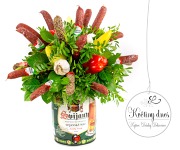Dárky pro MUŽE k narozeninám. Klobásové kytice se zeleninou, s pivem i láhví vína připravíme v naší dílně a doručíme v Praze, nebo si netradiční kytice vyzvednete u nás v obchodě.