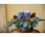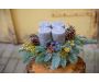 Adventní svícen rustikální šedé svíčky je zhotovený na špalku. Chvoj neopadavá jedle Nobilis.